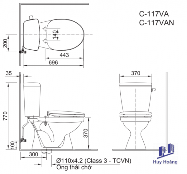 Bàn Cầu INAX C-117VAN (C117VAN) Hai Khối Xả Gạt Nắp Êm