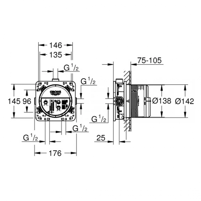 Bộ Âm Ổn Nhiệt Grohe SmartBox Universal 35600000 Gắn Tường