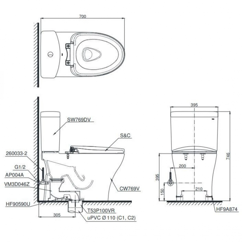 Bồn Cầu Điện Tử TOTO CS769CDRW15 Washlet