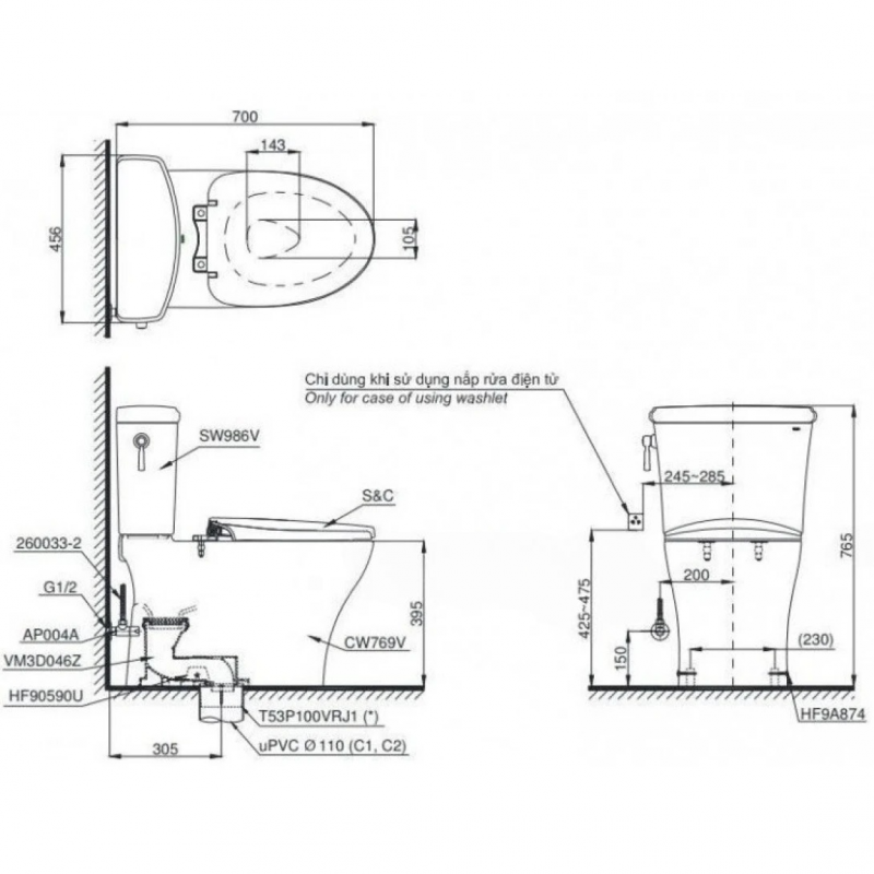 Bồn Cầu Điện Tử TOTO CS986GW18 Nắp Rửa Washlet TCF23710AAA C2 Simple
