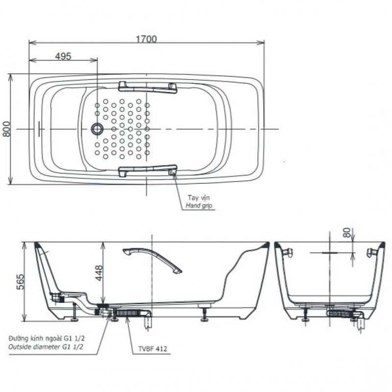 Bồn TắmBồn Tắm TOTOBồn Tắm Đặt SànBồn tắm GALALATO TotoBồn Tắm 1.7 Mét