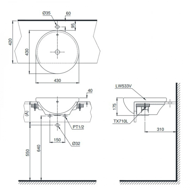 Chậu Lavabo TOTO LT533R#XW Bán Âm Bàn