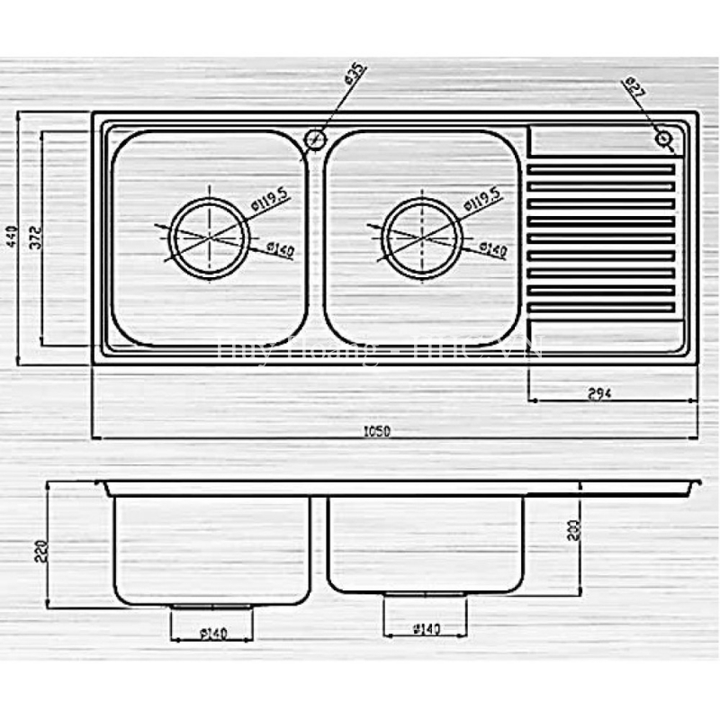 Chậu Rửa Chén Sơn Hà S105D Inox 304 2 Hộc 1 Cánh