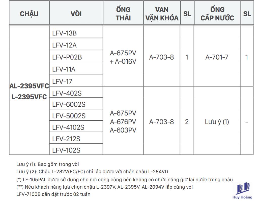 - Có thể dùng với vòi: LFV-1102S-1 , LFV-502S , LFV-5012S , LFV-1402S ...
