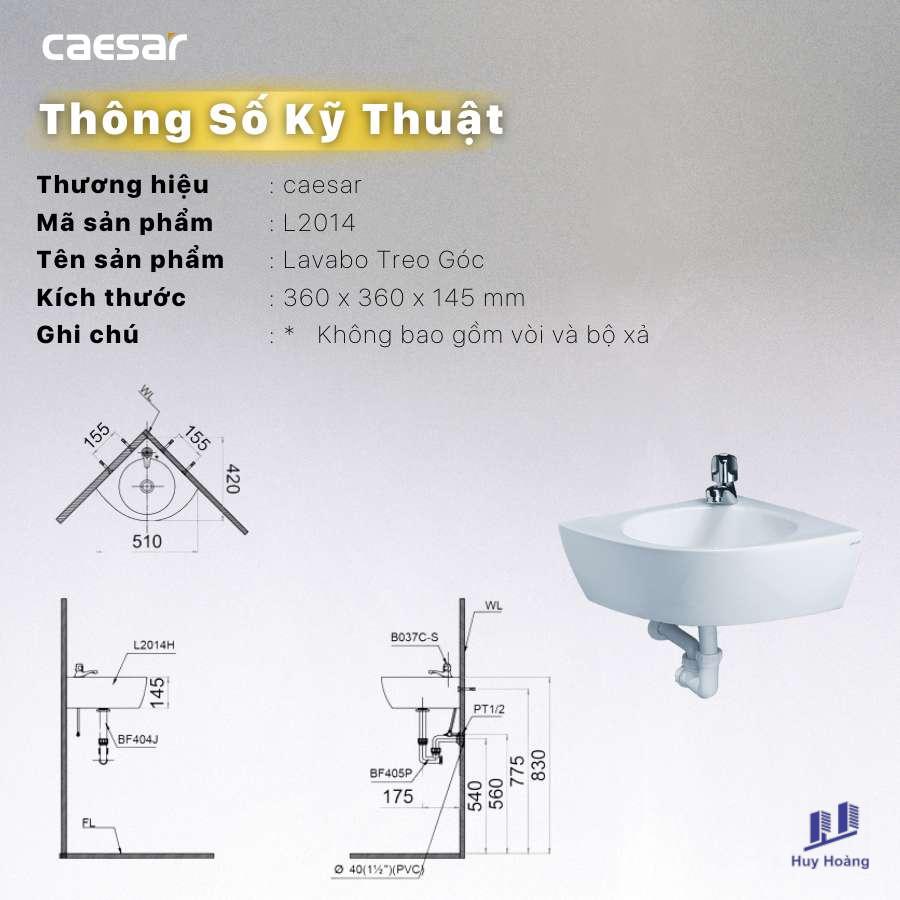 Chậu Rửa Lavabo CAESAR L2014 Góc Treo Tường