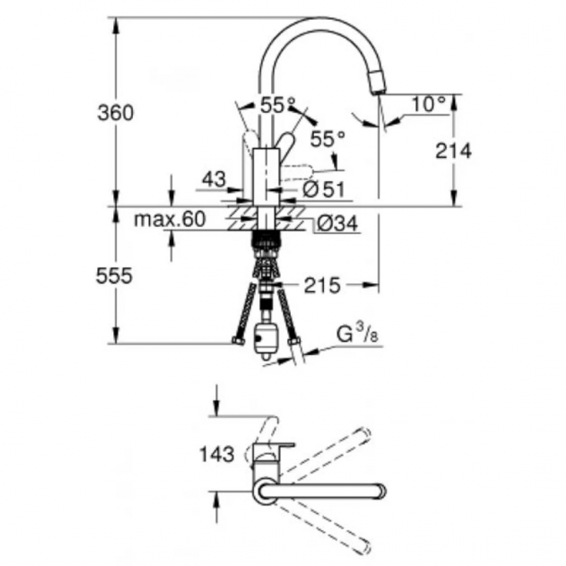 Vòi Bếp Grohe 31126004 Eurostyle Dây Rút