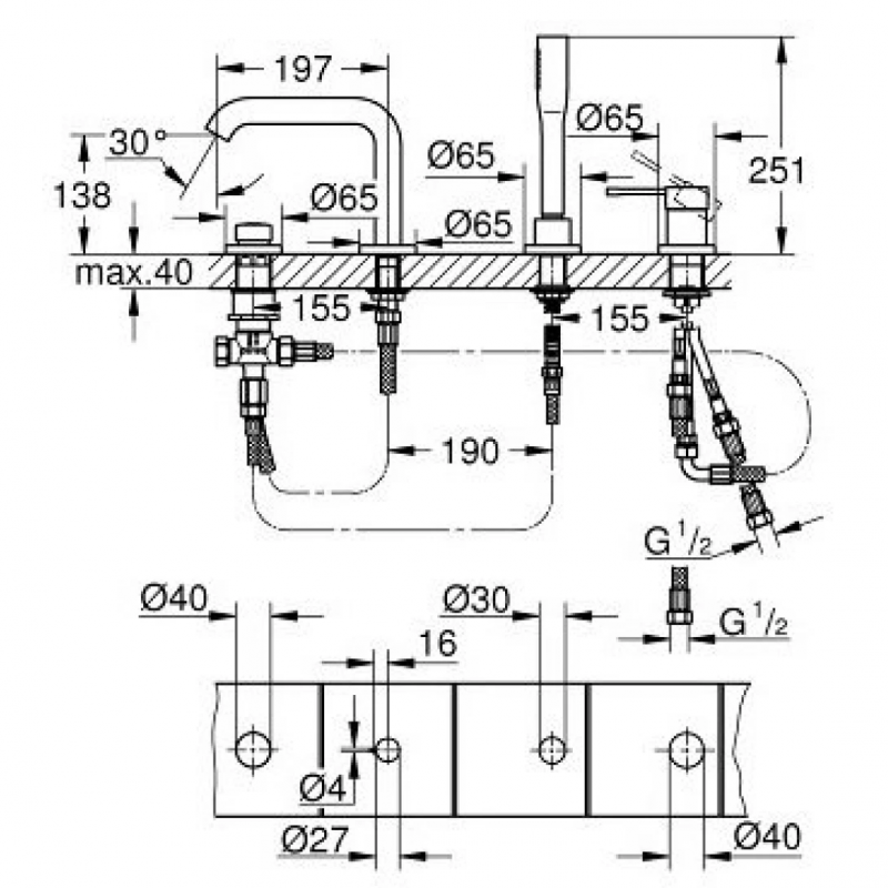 Vòi Bồn Tắm Essence New OHM Grohe 19578001 4 Lỗ