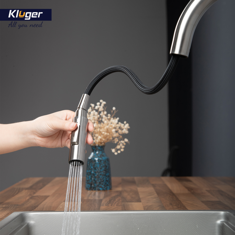 Được nghiên cứu và thiết kế với sự tỉ mỉ và chú trọng đến từng chi tiết, vòi rửa bát Kluger hiện đại hòa quyện một phong cách hoàn hảo giữa hình thức và chức năng, tạo ra một điểm nhấn nổi bật về không gian cho căn bếp.