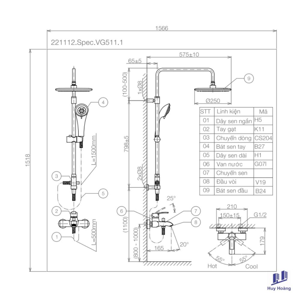 Vòi Sen Cây Viglacera VG511.1 Nóng Lạnh