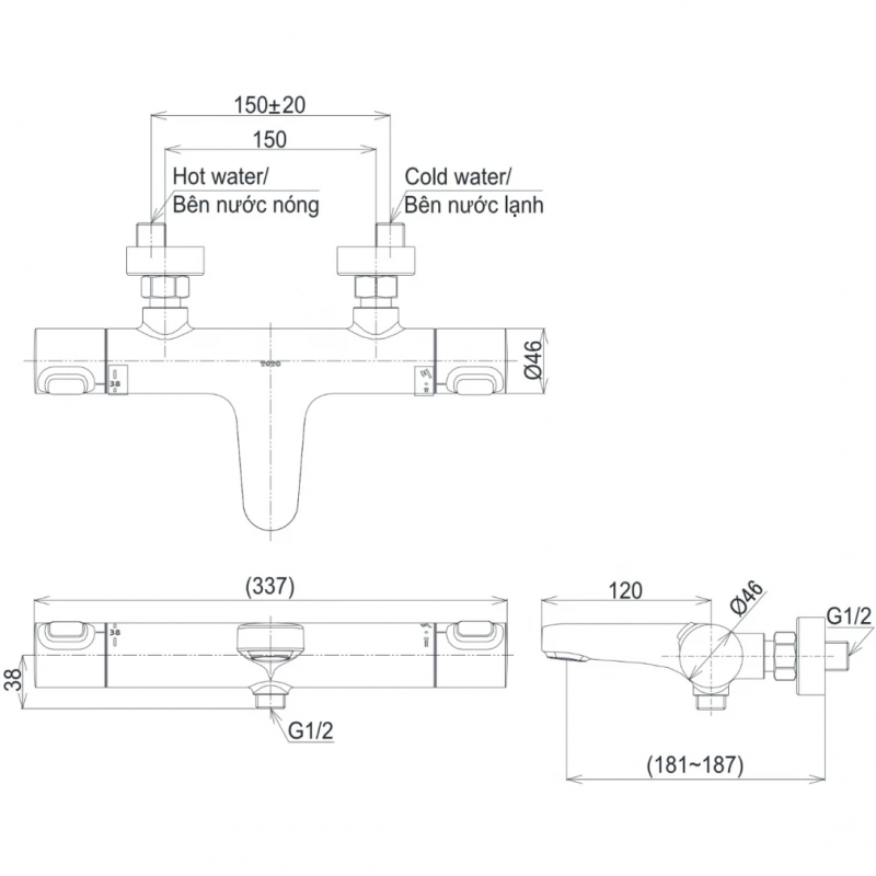 Vòi Sen Tắm Nhiệt Độ TOTO TBV09400V/TBW07012A Xả Bồn
