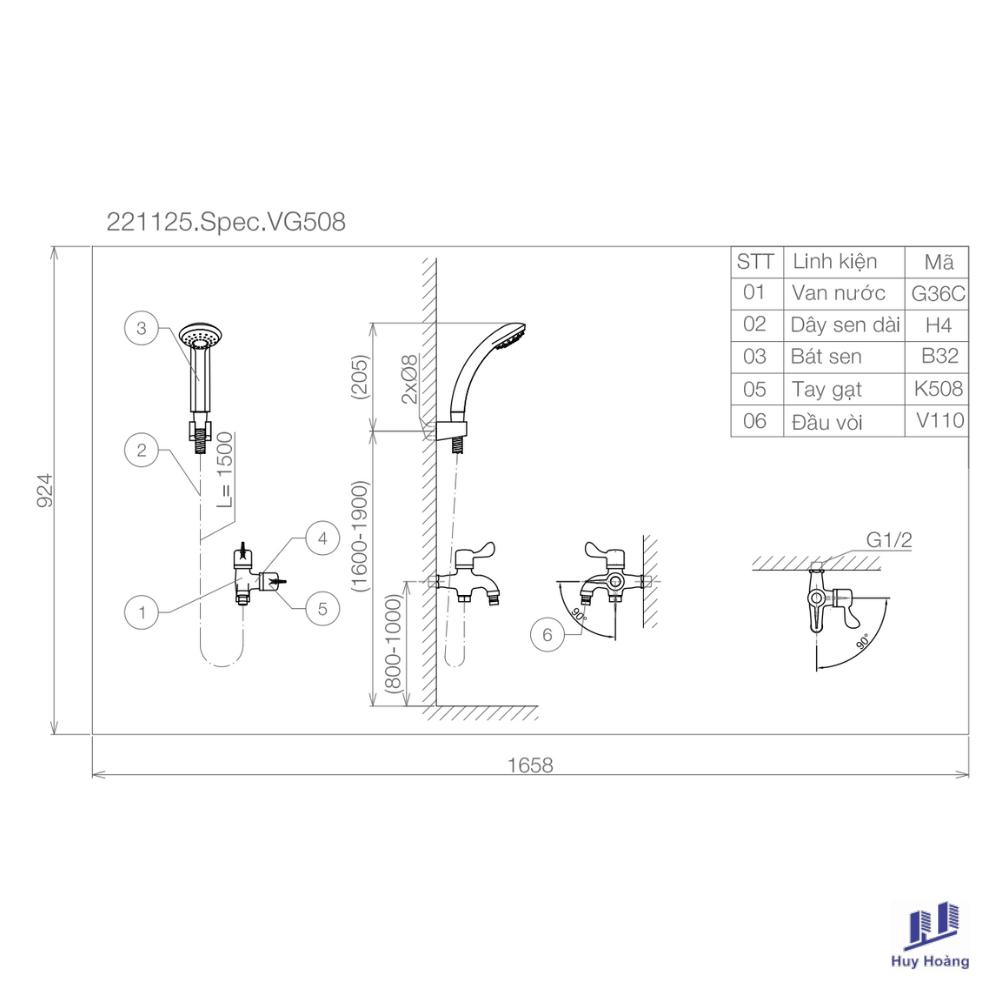 - Vòi sen tắm Viglacera VG508 lạnh được thiết kế (tinh tế, sang trọng) đến từ thương hiệu thiết bị vệ sinh Viglacera