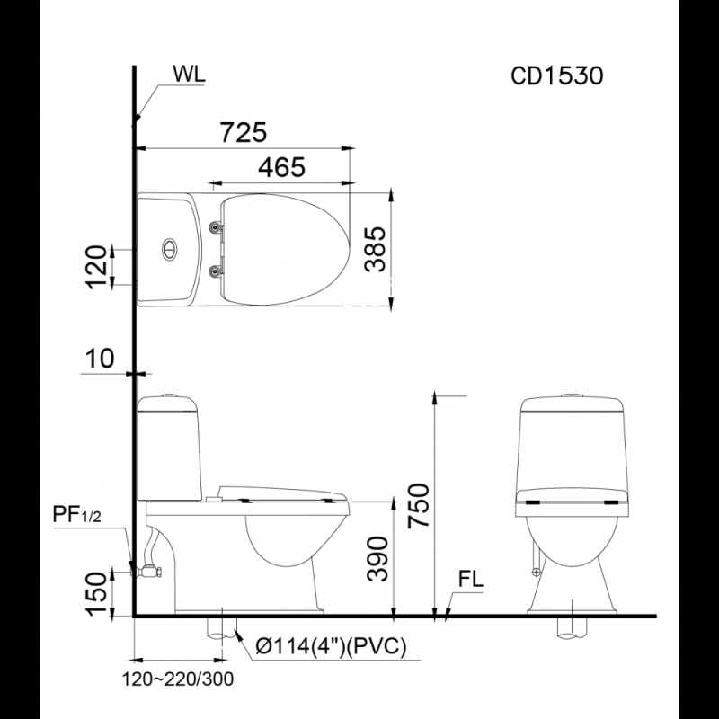 Bồn cầu CAESAR 1530 hai khối ứng dụng kỹ thuật xả thẳng tiên tiến cuốn trôi mọi vết bẩn