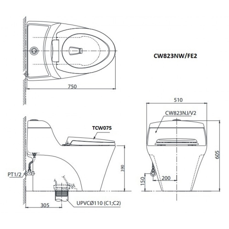 Bàn Cầu TOTO CW823NW/FE2 Một Khối Nắp Cơ (Hết hàng)
