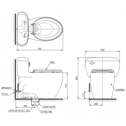 Bàn Cầu TOTO MS366T7 Một Khối Nắp TC6040S (Hết hàng)