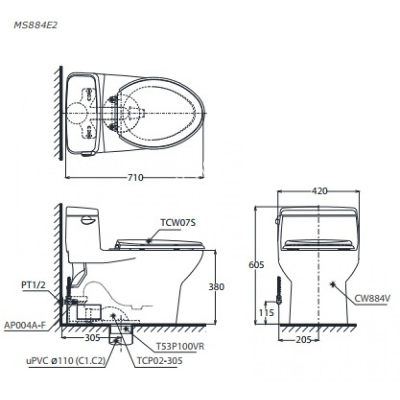 Bàn Cầu TOTO MS884E2 Một Khối Nắp Cơ (Hết hàng)