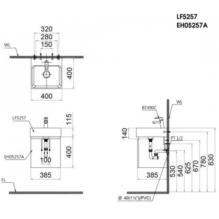 Bộ Tủ Lavabo Caesar Treo Tường LF5257/EH05257ATGV Xám Đậm