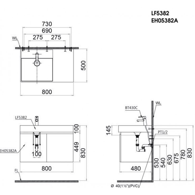 Bộ Tủ Lavabo Caesar Treo Tường LF5382/EH05382AV