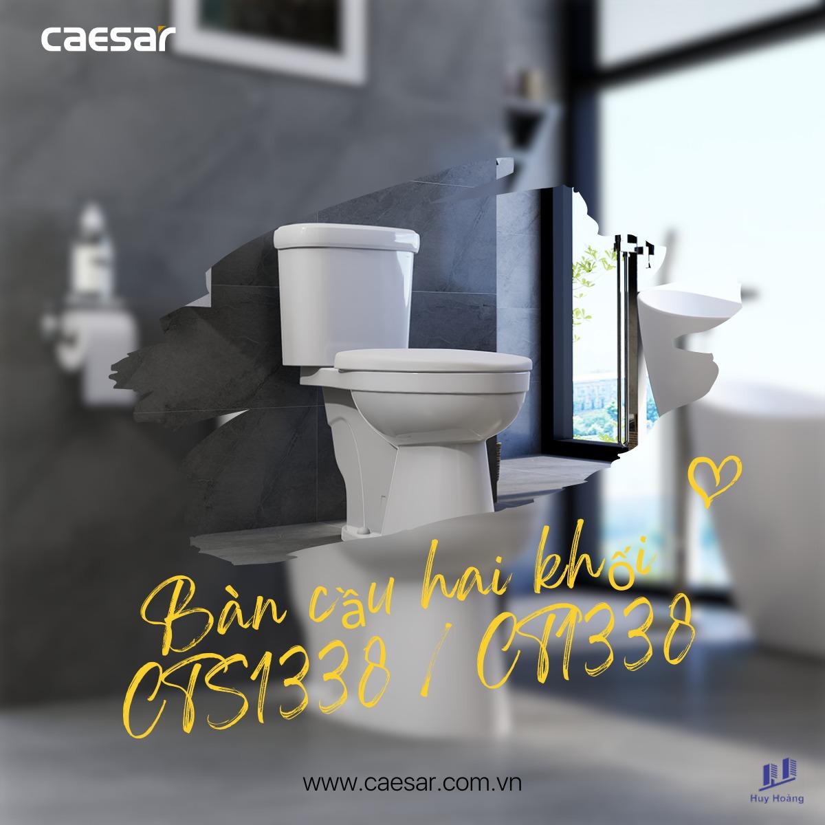 Bồn Cầu CAESAR CT1338 Thùng T1138 1 Nhấn Nắp Thường