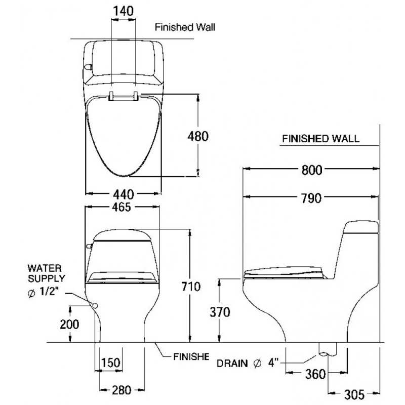 Bồn Cầu COTTO C1046 Một Khối Astoria Xả Gạt