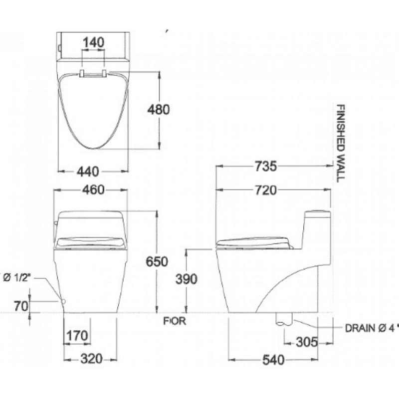 Bồn Cầu COTTO C10527 1 Khối Grand Riviera