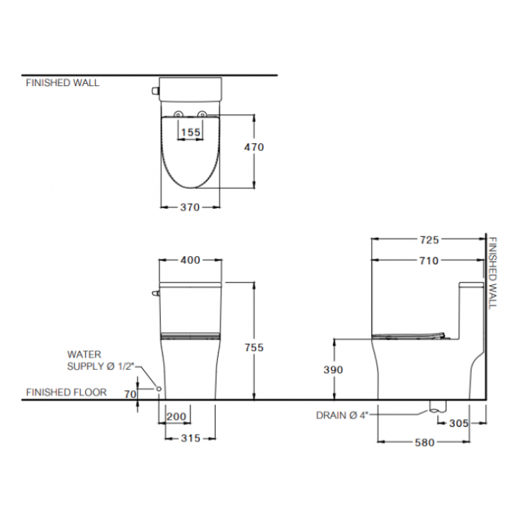 Bồn Cầu COTTO C105617 Một Khối Xả Nhấn