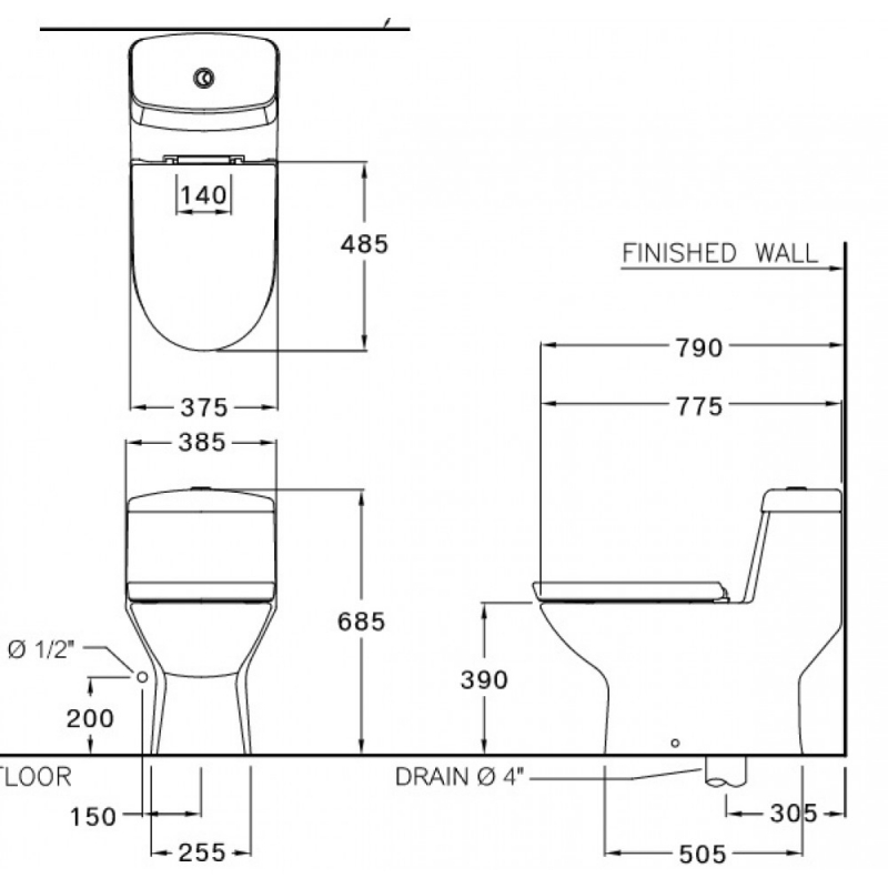 Bồn Cầu COTTO C1113 Một Khối Viggo Xả Nhấn