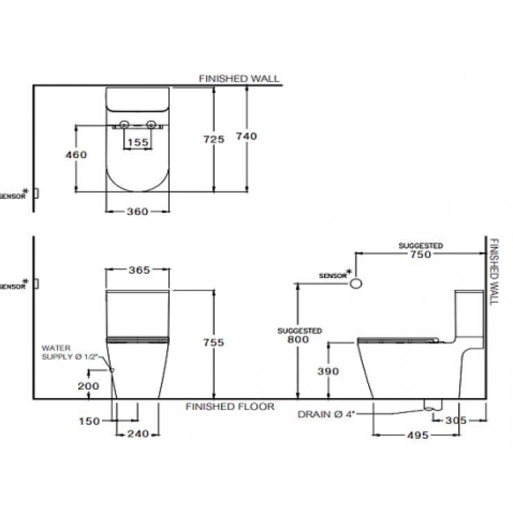 Bồn Cầu COTTO C125337 Hai Khối Cảm Ứng Không Chạm