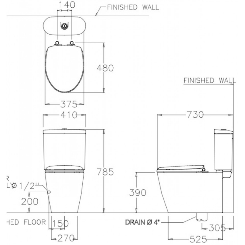 Bồn Cầu COTTO C16817 Hai Khối 3x3 E1 Nắp Êm