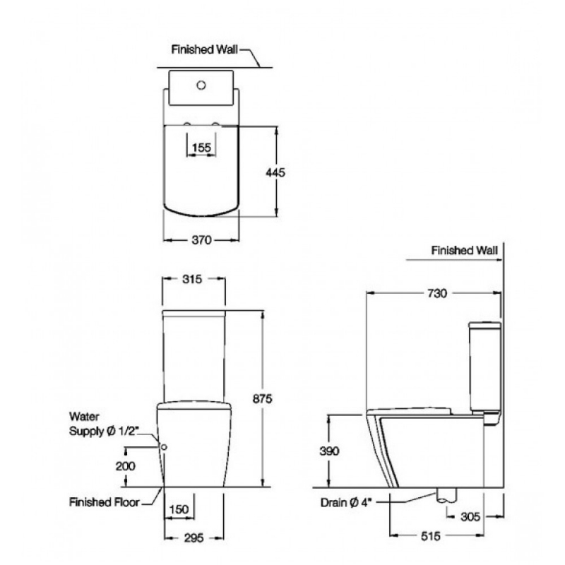 Bồn Cầu COTTO C16897 Hai Khối 3x3 R3