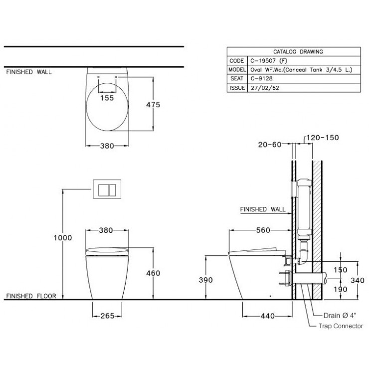 Bồn Cầu Cotto SC19507(F) Đặt Sàn Thoát Ngang 190mm