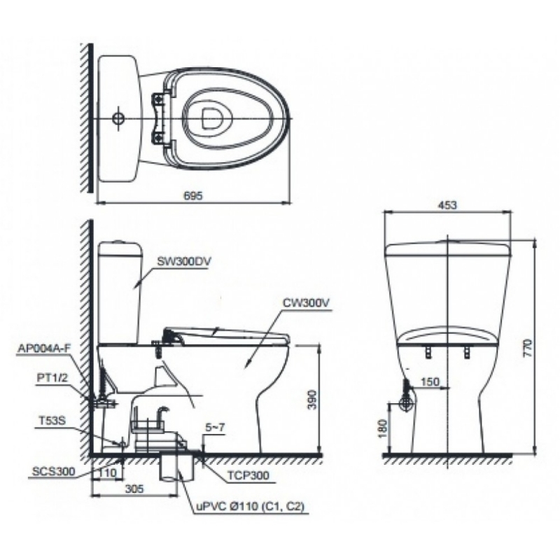 Bồn Cầu Điện Tử TOTO CS300DRW7 Nắp Rửa Washlet (Hết hàng)