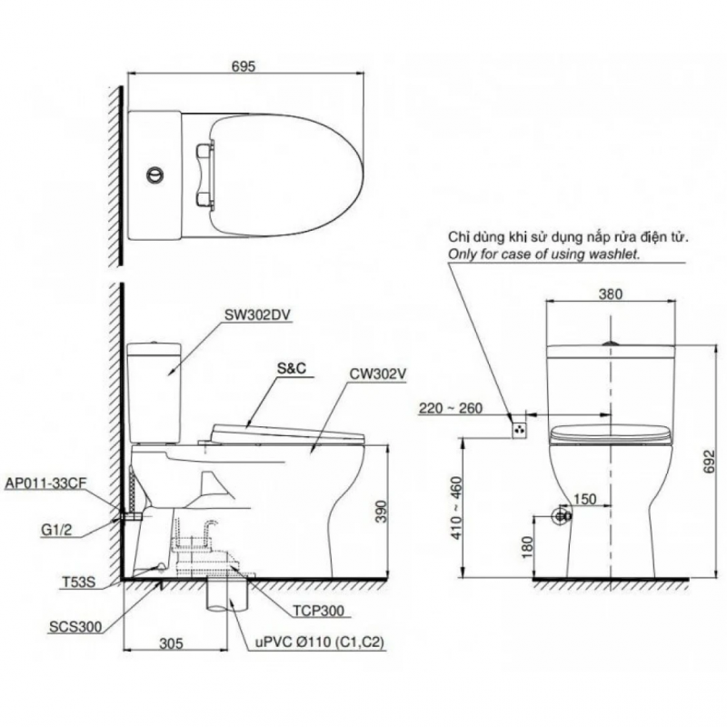 Bồn Cầu Điện Tử TOTO CS302DW18 Nắp Rửa Washlet TCF23710AAA C Simple