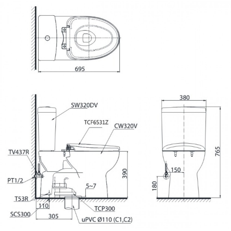 Bồn Cầu Điện Tử TOTO CS320DRW6 Nắp Rửa Washlet (Hết hàng)