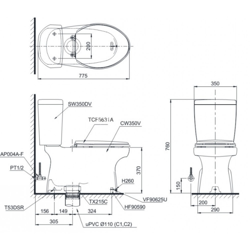 Bồn Cầu Điện Tử TOTO CS350DW7 Nắp Rửa Washlet (Hết hàng)