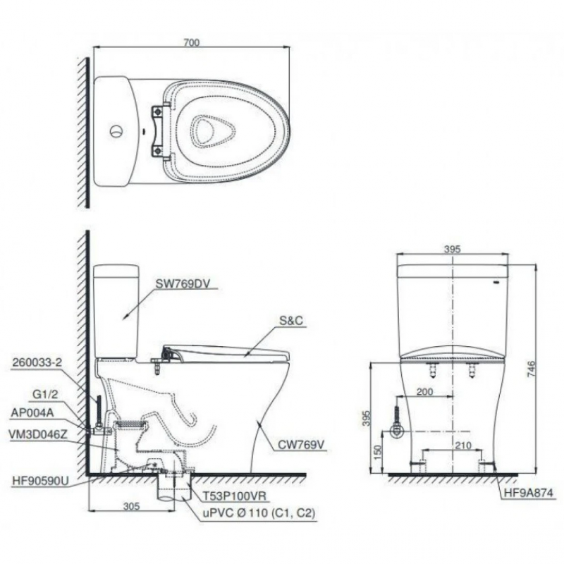 Bồn Cầu Điện Tử TOTO CS769DRW18 Nắp Rửa Washlet TCF23710AAA C2 Simple