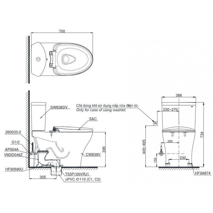 Bồn Cầu Điện Tử TOTO CS838CDW15 Washlet