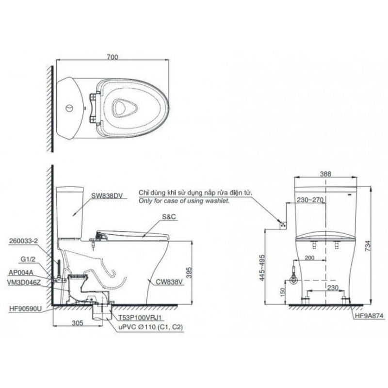 Bồn Cầu Điện Tử TOTO CS838DW18 Nắp Rửa Washlet TCF23710AAA C2 Simple