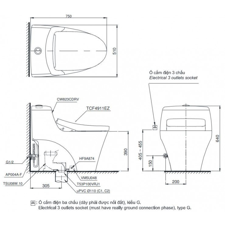 Bồn Cầu Điện Tử TOTO MS823CDRW12 Nắp Tự Động Đóng Mở Giấu Dây