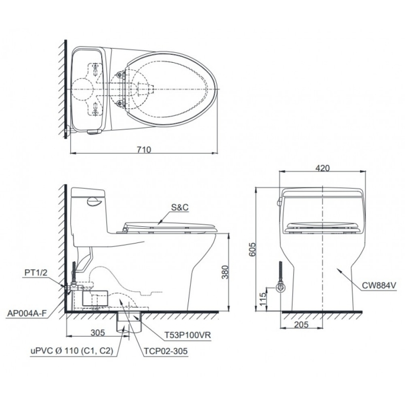 Bồn Cầu Điện Tử TOTO MS884W7 Nắp Rửa Washlet (Hết hàng)