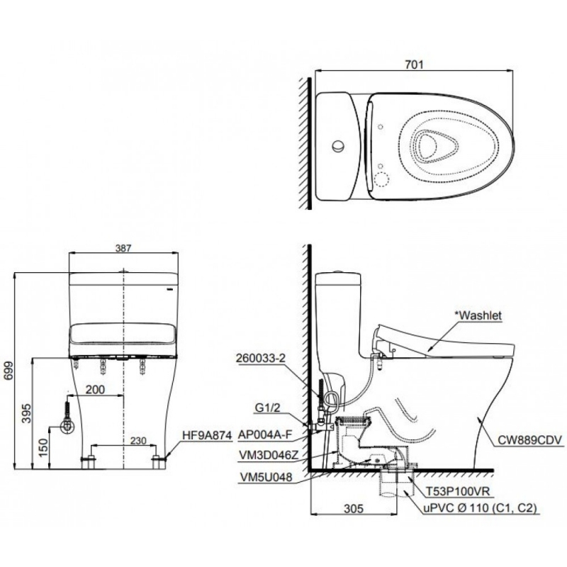 Bồn Cầu Điện Tử TOTO MS889CDRW12 (MS889CDW12) Nắp Tự Động Đóng Mở