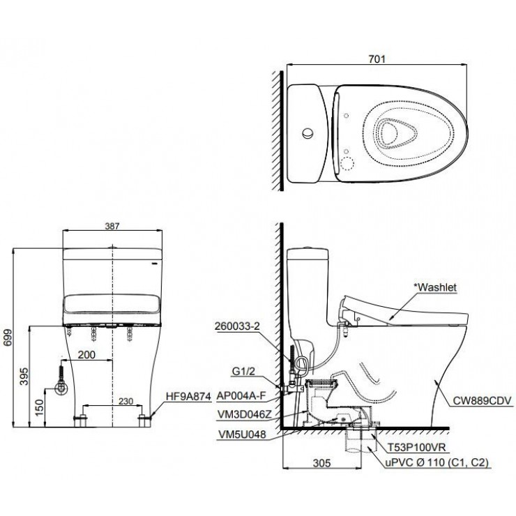 Bồn Cầu Điện Tử TOTO MS889CDRW15 Washlet