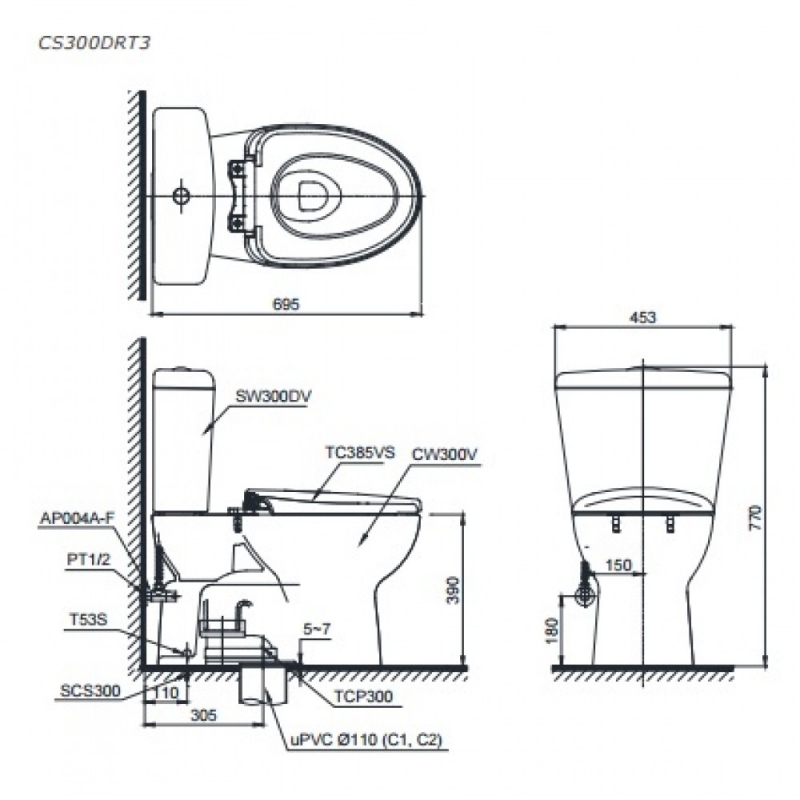 Bồn Cầu Hai Khối TOTO CS320DRT2 Nắp TC393VS (Hết hàng)