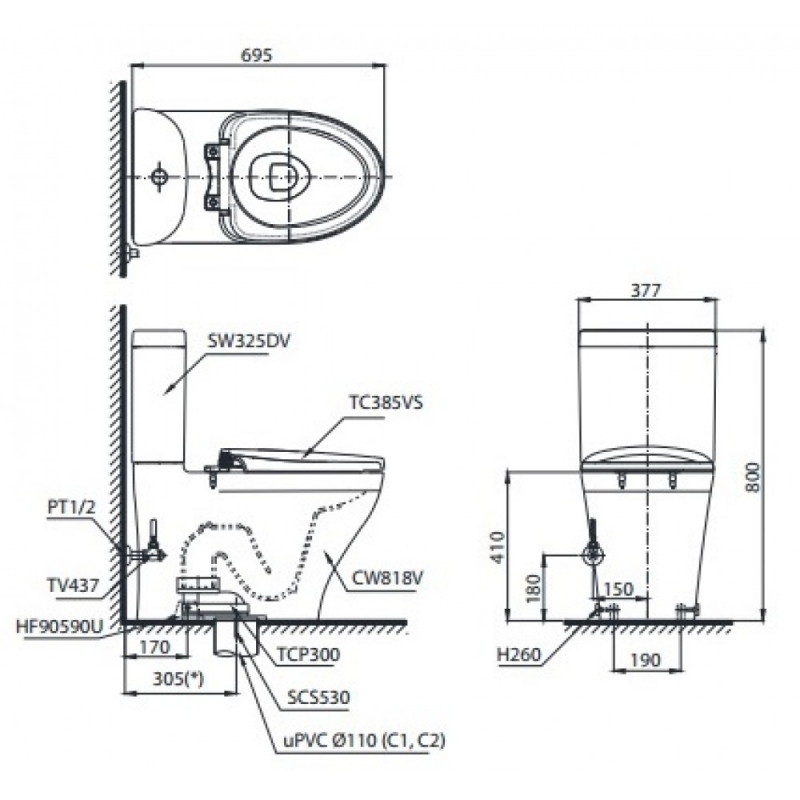 Bồn Cầu Hai Khối TOTO CS818DT2 Nắp TC393VS