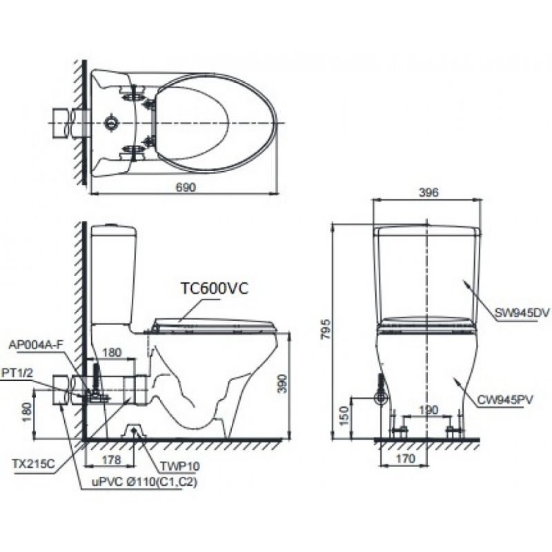 Thông tin cơ bản bồn cầu TOTO CS945PDT8