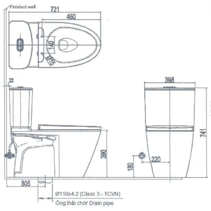 Bồn Cầu INAX AC-602VN-2 ( AC602VN-2) 2 Khối Xả Nhấn Aqua Ceramic