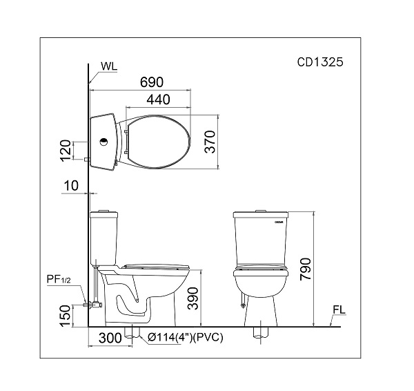 Bồn Cầu Nắp Rửa Cơ CAESAR CD1325/TAF060 2 Khối