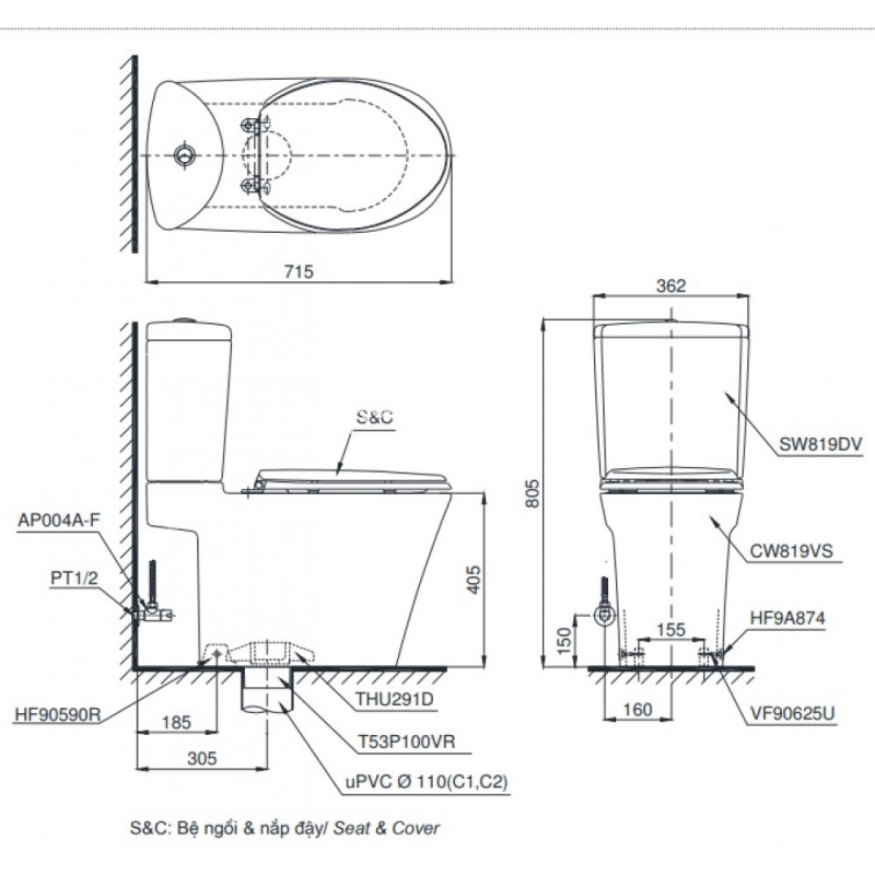 Nắp bồn cầu: TC600VS