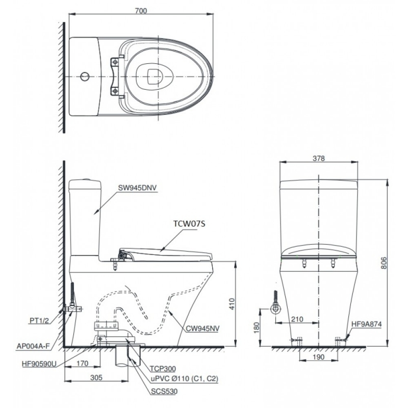 Nắp rửa cơ TCW07S (E2) - Xuất xứ: Inđônêxia