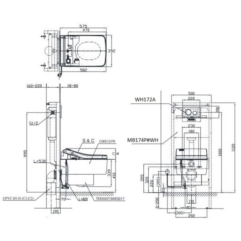 Bồn Cầu TOTO CW512YR/9AE0017/TCF403EA Treo Tường Nắp Điện Tử