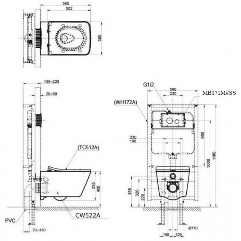 Bồn Cầu TOTO CW522A/TC512A/WH172A/MB171M#SS Treo Tường
